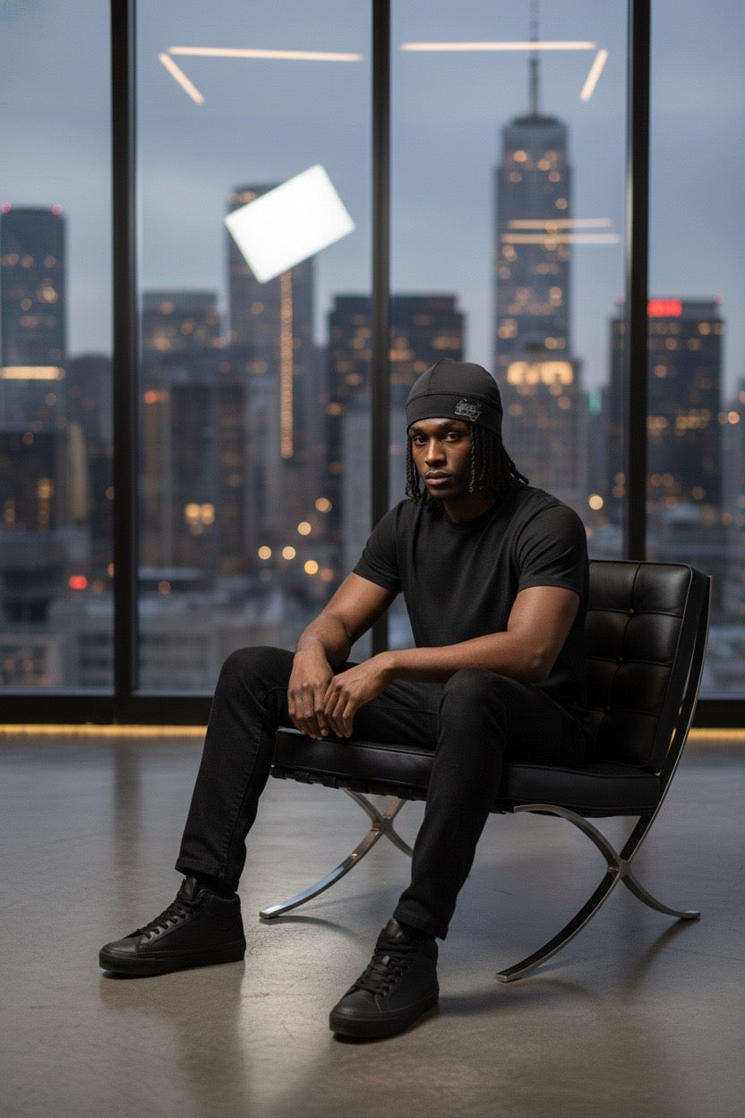 Made from smooth, lightweight stretch fabric, this skull cap offers a secure yet breathable fit, perfect for everyday wear, sleeping, or layering under hats and hoods. The sleek black design keeps it timeless, while the reflective logo adds a subtle statement — visible in low light, powerful in meaning.