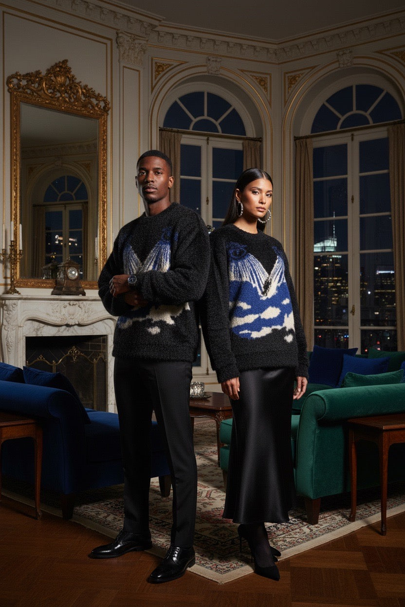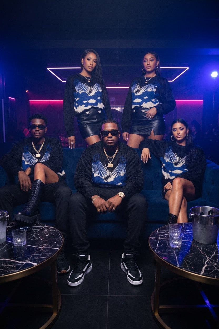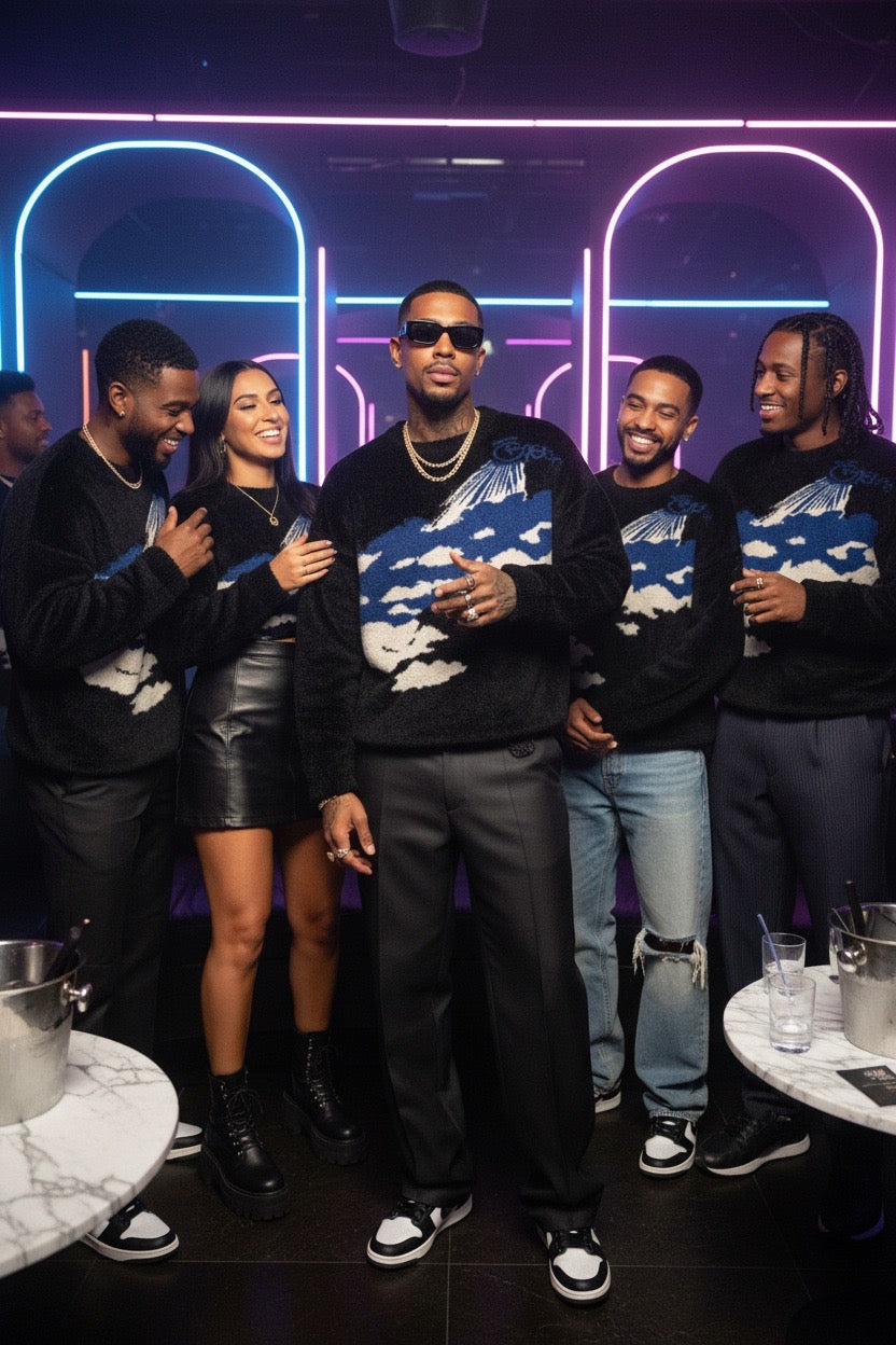 With its luxury feel and relaxed fit, the Favoured One Sweater is built for statement wear without excess. Whether styled casually or layered for a full GFE765 look, it speaks for itself — timeless, intentional, and unmistakable.