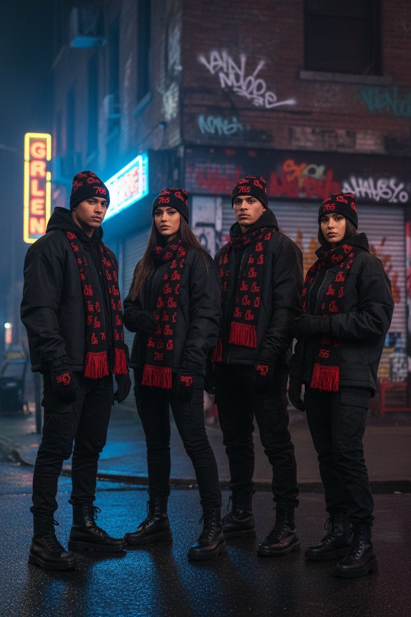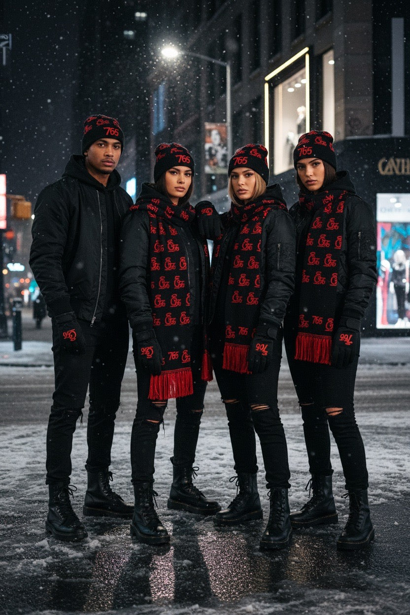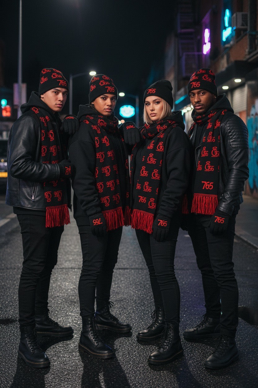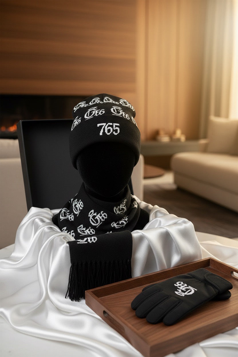 Each set includes a matching beanie, scarf, and gloves, finished with the iconic GFE765 monogram — a statement of identity, faith, and confidence.