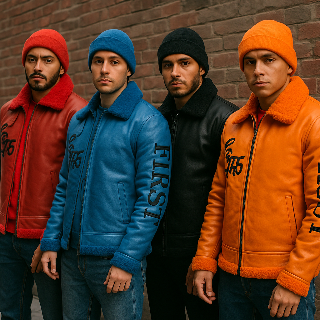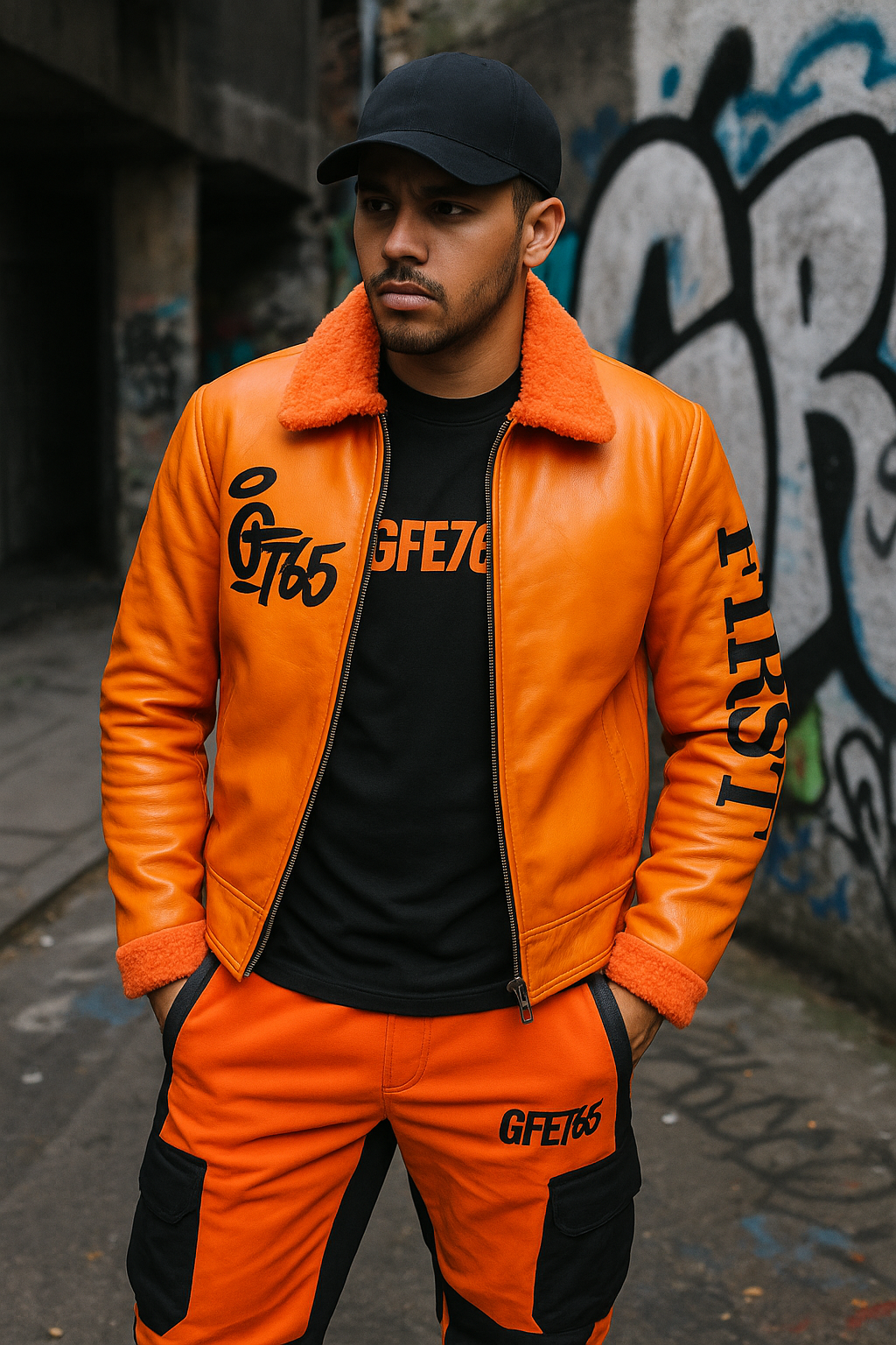 Each jacket is crafted with attention to every stitch — from the embroidered “765” insignia and GFE signature logo, to the reinforced leather finish and plush interior designed to last. The bold colourways — Black, Blue, Red, and Orange — command attention while keeping that street-ready edge.