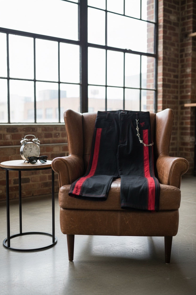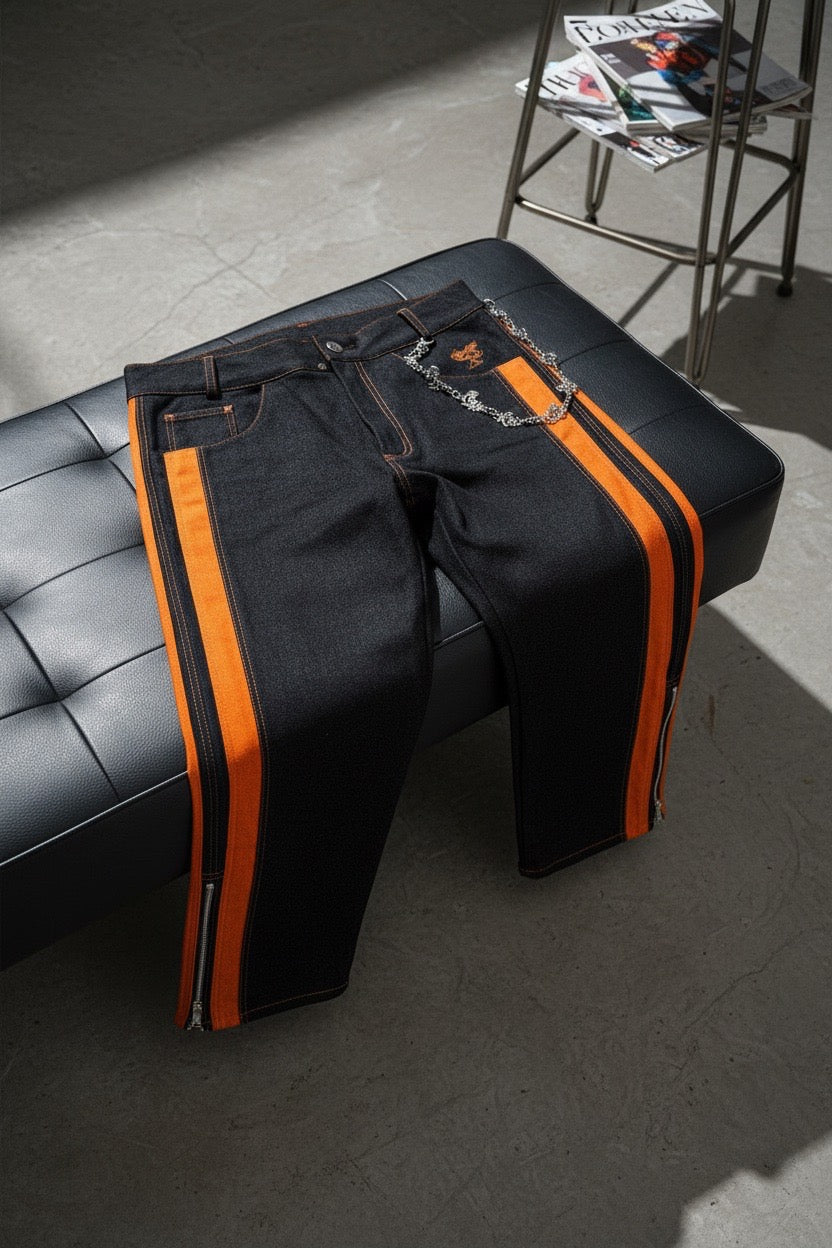 Introducing the Royal Sideline Jeans, where luxury tailoring meets bold streetwear design. Crafted for those who lead with confidence, these jeans elevate your entire look with their sleek silhouette, precision stripe detailing, and premium finish that feels as good as it looks.